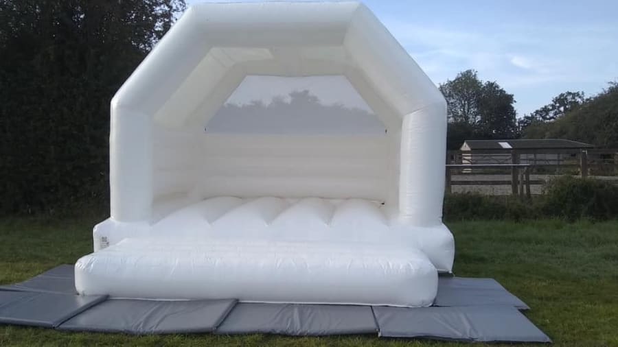 Celebrate your wedding day with a touch of whimsy and joy! Our new White Wedding Bouncy Castle is a large and stunning option that adds a unique flair to your big day. Perfectly suited for both adults and children, this castle ensures that everyone can join in the fun, making your wedding truly memorable for all your guests.