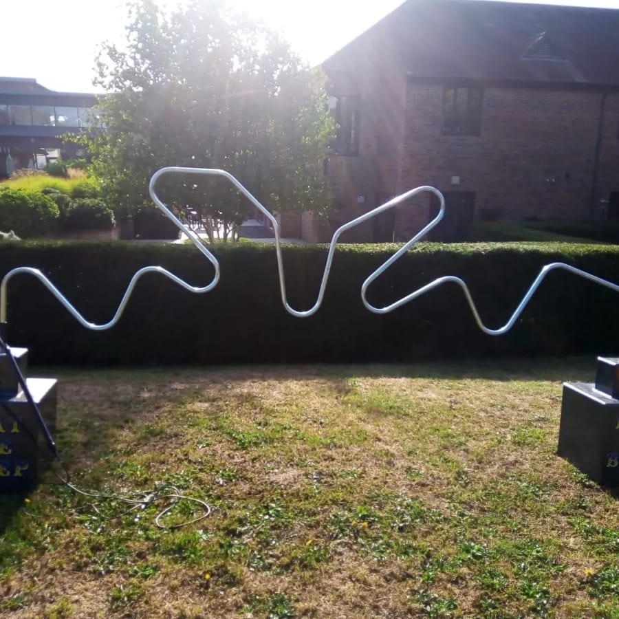 The Giant Buzz Wire is designed for use either indoors or outdoors on flat, level ground, ensuring it fits perfectly at any venue.