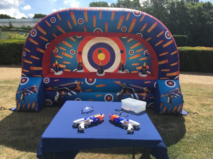 Thinking of ramping up your party's fun factor? This Nerf shootout, armed with its guns and bullets, is the perfect addition to any big event, guaranteeing exhilarating action from start to finish! And if you're on the lookout for more, don't miss our party extras. Or, perhaps consider pairing this with one of our popular children's bouncy castles for a truly unforgettable event.