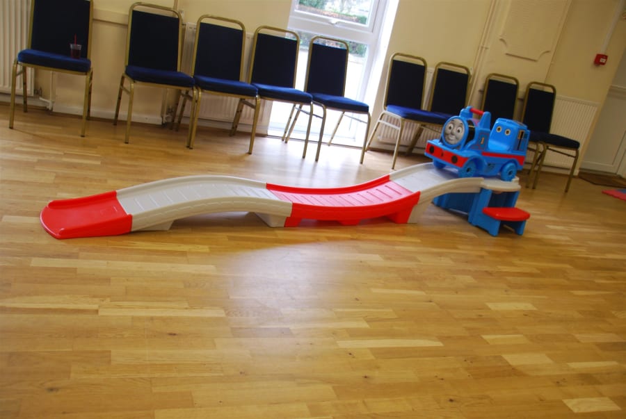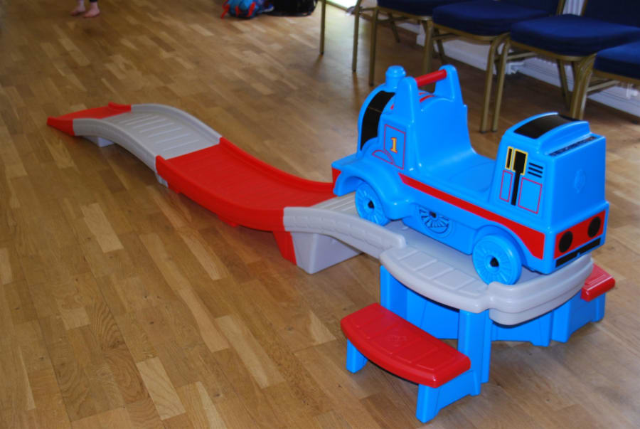 The Thomas-themed ball pool and a Step 2 Sit on Thomas the Tank Rollercoaster also enhance the play experience.