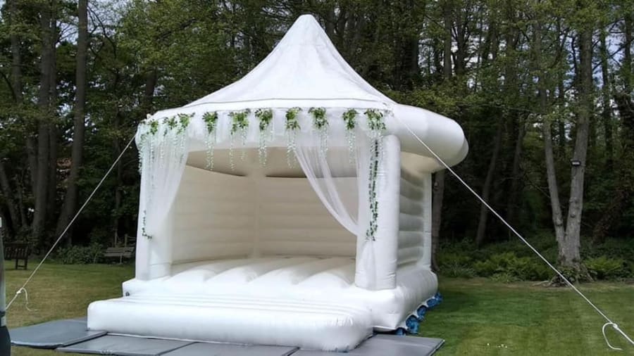 NEW Wedding Castle: Delight in our exquisite white wedding bouncy castle, adorned with flowers and elegant curtains, making it a perfect fit for both adults and children. Not only does this bouncy castle provide endless fun, but it also serves as a beautiful backdrop for memorable photos.
