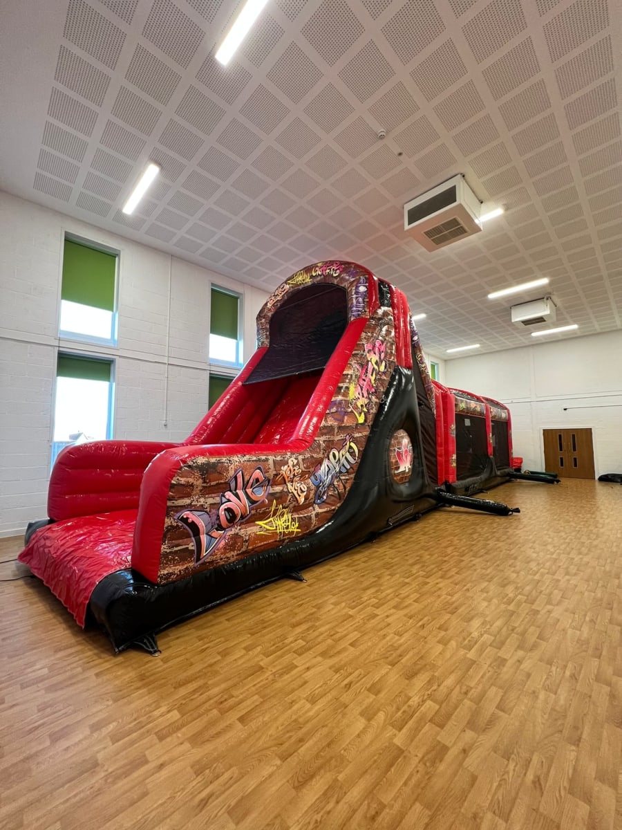 Please make sure the setup area is clear of any obstacles, such as garden furniture, plants, and power cables. If hiring a hall, check with the venue to ensure there is enough space for the inflatable.